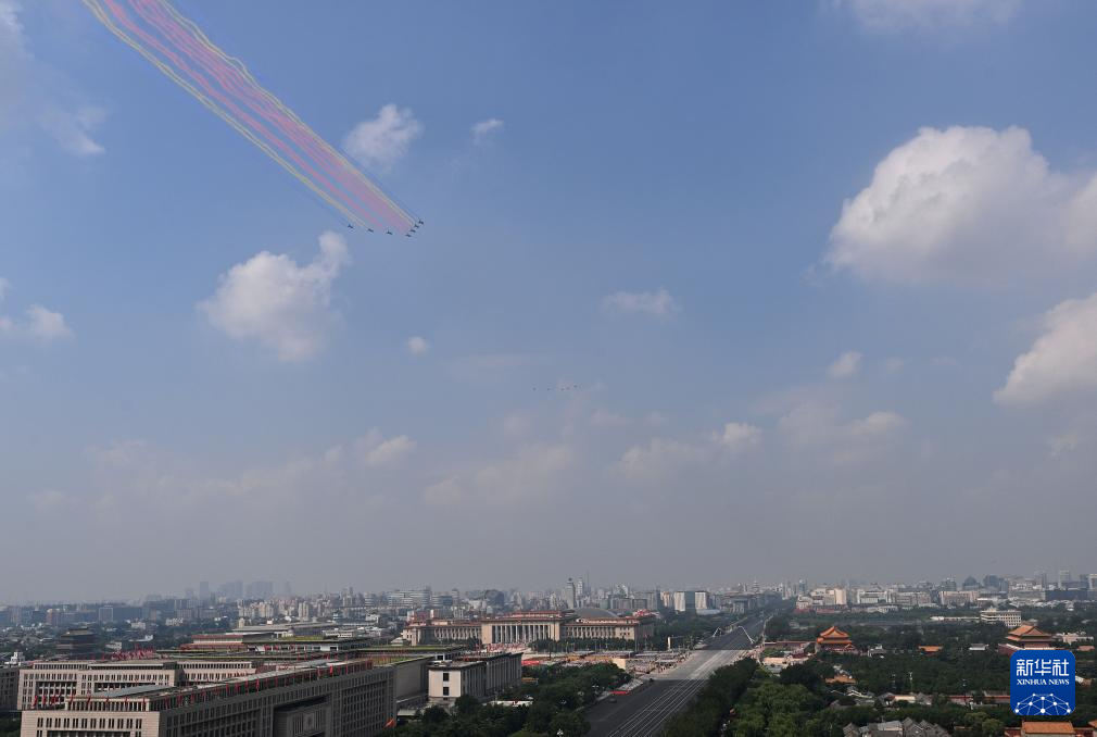 9月3日,紀念中國人民抗日戰爭暨世界反法西斯戰爭勝利80周年大會在北京隆重舉行。這是空中梯隊。
