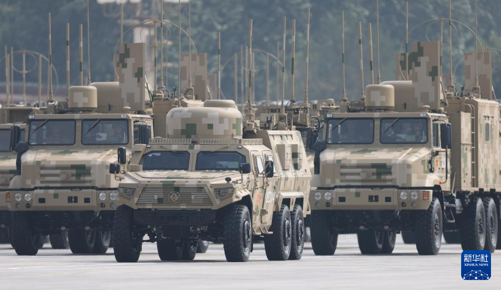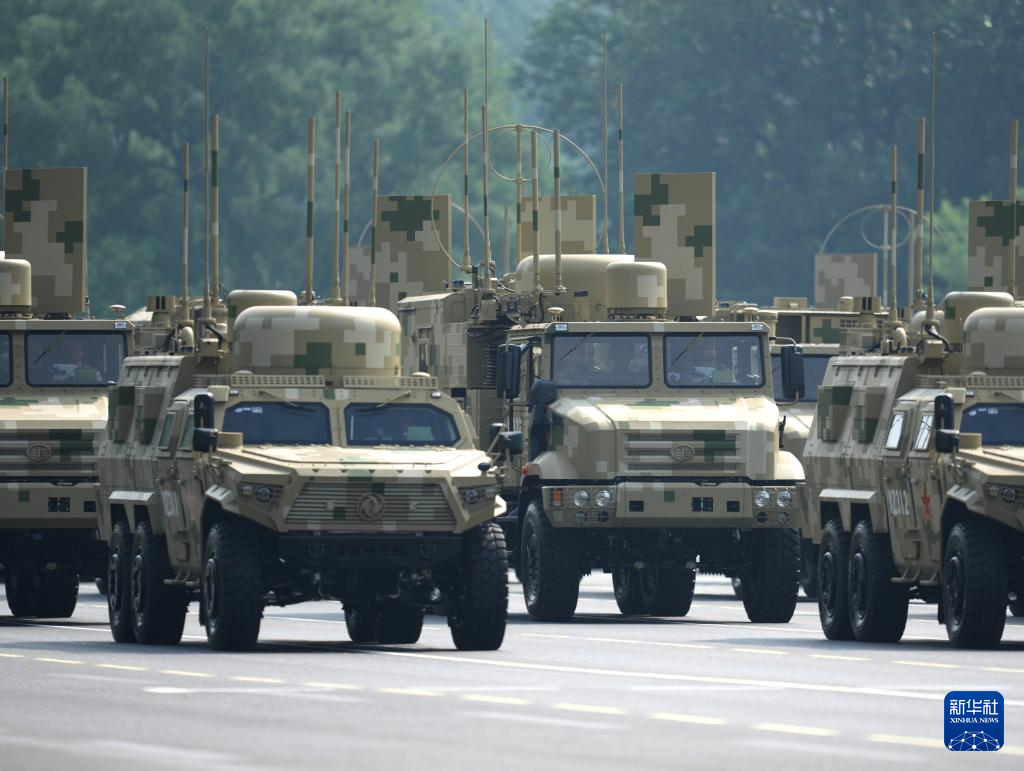 9月3日,紀念中國人民抗日戰爭暨世界反法西斯戰爭勝利80周年大會在北京隆重舉行。這是信息支援方隊接受檢閱。
