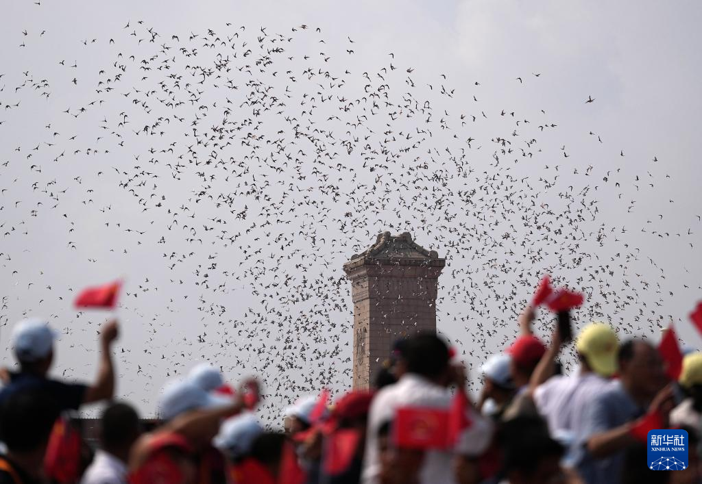 9月3日,紀念中國人民抗日戰爭暨世界反法西斯戰爭勝利80周年大會在北京隆重舉行。這是紀念大會現場放飛和平鴿。