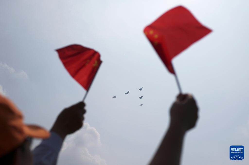 9月3日,紀念中國人民抗日戰爭暨世界反法西斯戰爭勝利80周年大會在北京隆重舉行。這是殲擊機梯隊飛過天安門廣場上空。