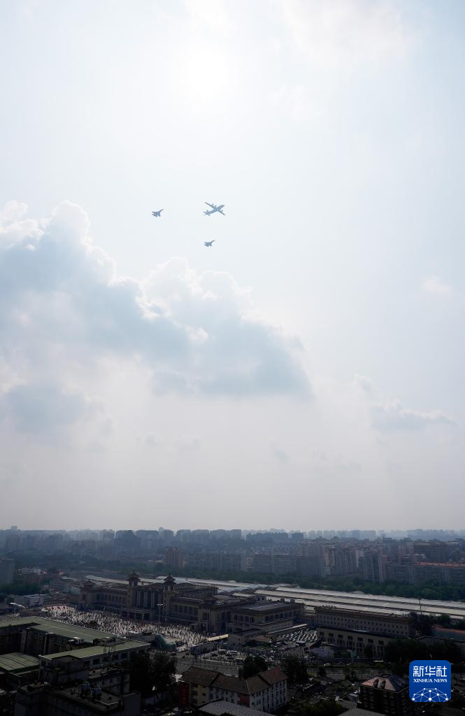 9月3日,紀念中國人民抗日戰爭暨世界反法西斯戰爭勝利80周年大會在北京隆重舉行。這是轟炸機梯隊飛過天安門廣場上空。