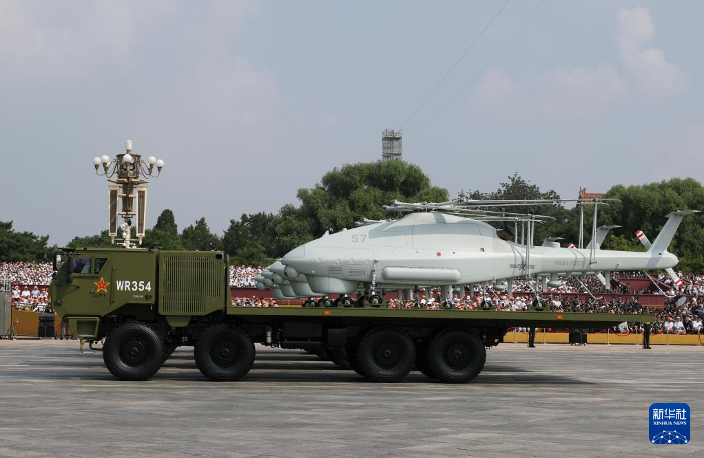 9月3日,紀念中國人民抗日戰爭暨世界反法西斯戰爭勝利80周年大會在北京隆重舉行。這是空中無人作戰方隊接受檢閱。