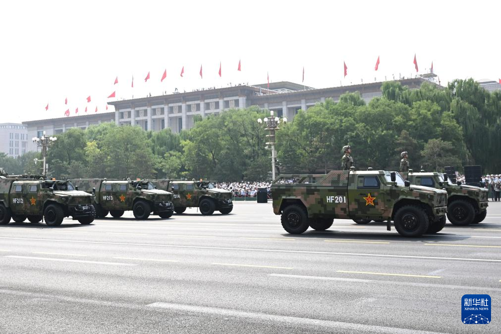 9月3日,紀念中國人民抗日戰爭暨世界反法西斯戰爭勝利80周年大會在北京隆重舉行。這是裝備保障方隊接受檢閱。