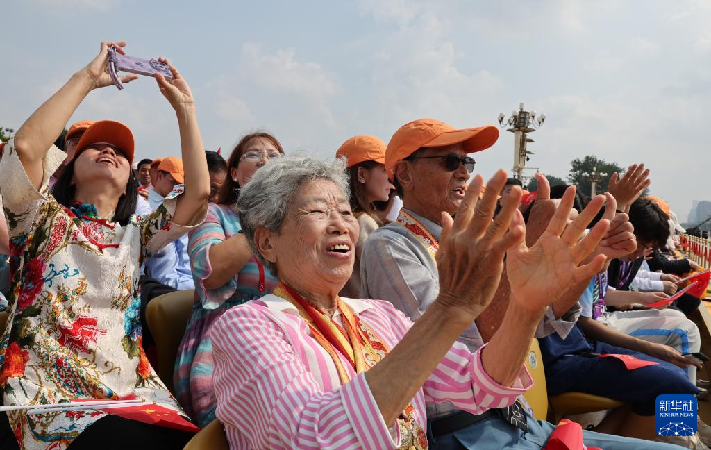 9月3日,紀念中國人民抗日戰爭暨世界反法西斯戰爭勝利80周年大會在北京隆重舉行。這是來自香港的抗戰老兵林珍(前)。