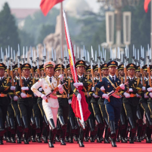 9月3日,紀念中國人民抗日戰爭暨世界反法西斯戰爭勝利80周年大會在北京隆重舉行。這是國旗護衛隊在天安門廣場上列隊。