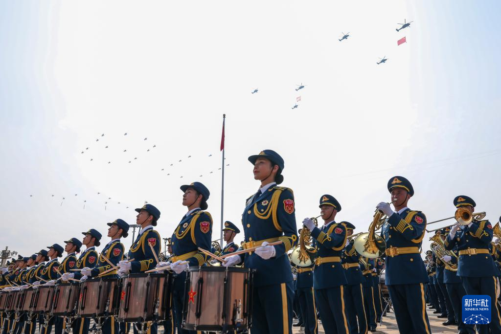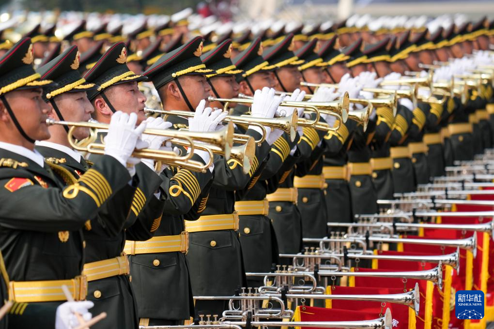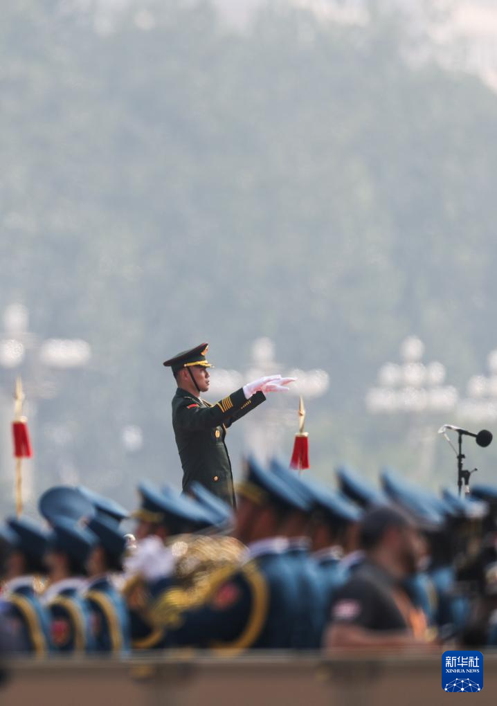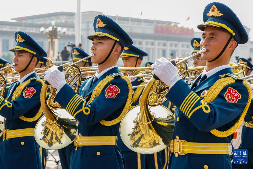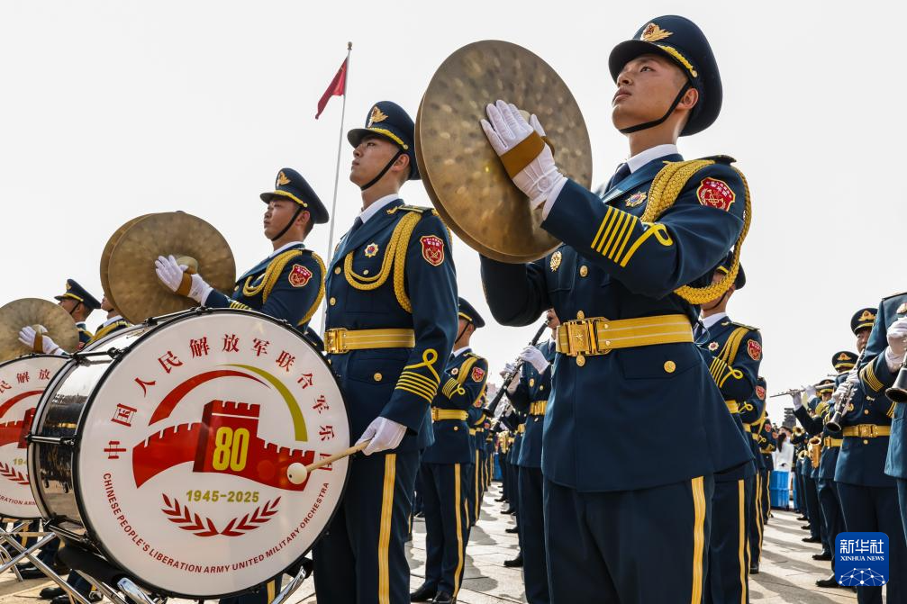 9月3日,紀念中國人民抗日戰爭暨世界反法西斯戰爭勝利80周年大會在北京隆重舉行。這是中國人民解放軍聯合軍樂團在演奏。