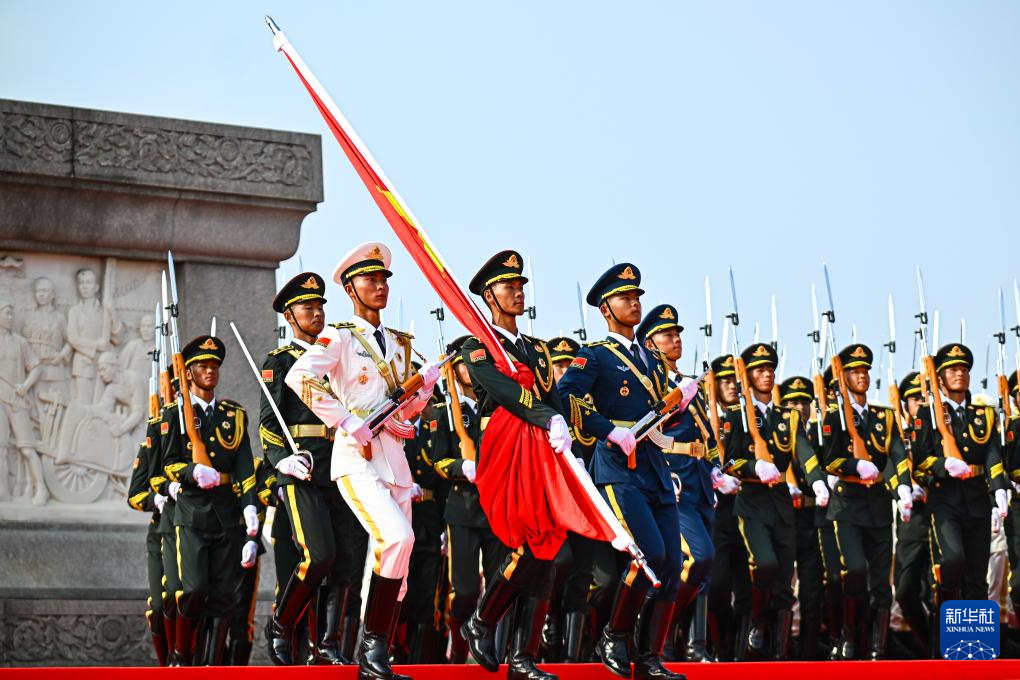 9月3日,紀念中國人民抗日戰爭暨世界反法西斯戰爭勝利80周年大會在北京隆重舉行。這是國旗護衛隊在行進中。