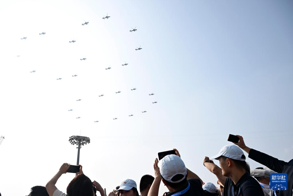 9月3日,紀念中國人民抗日戰爭暨世界反法西斯戰爭勝利80周年大會在北京隆重舉行。這是空中護旗梯隊。