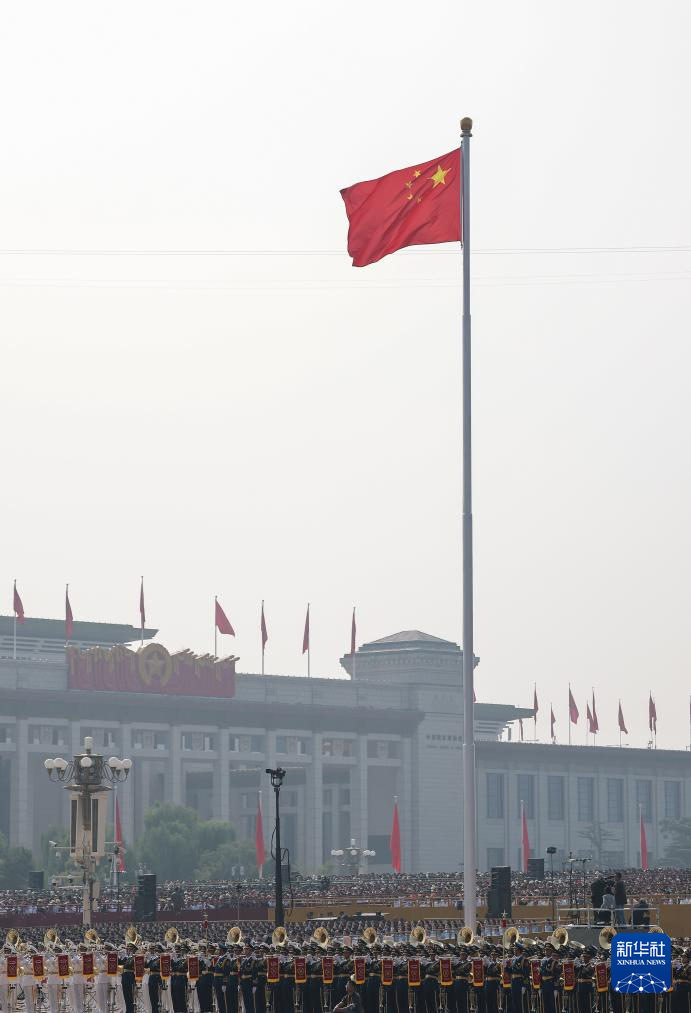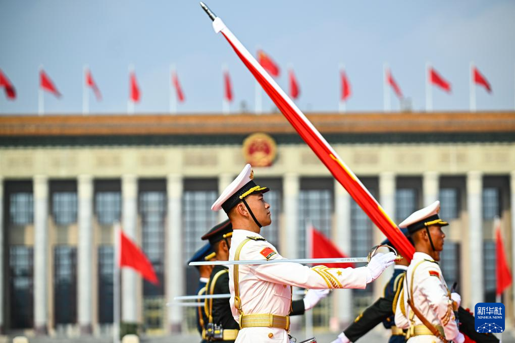9月3日,紀念中國人民抗日戰爭暨世界反法西斯戰爭勝利80周年大會在北京隆重舉行。這是天安門廣場舉行隆重的升國旗儀式。