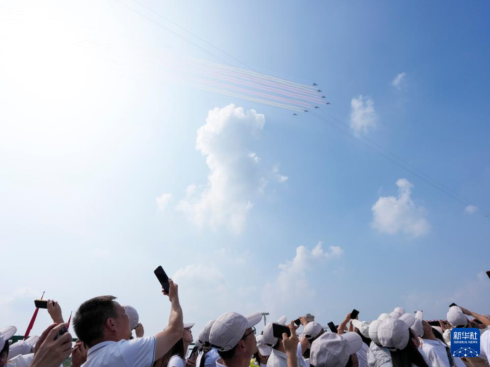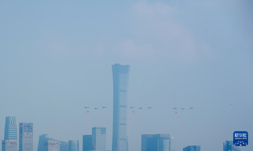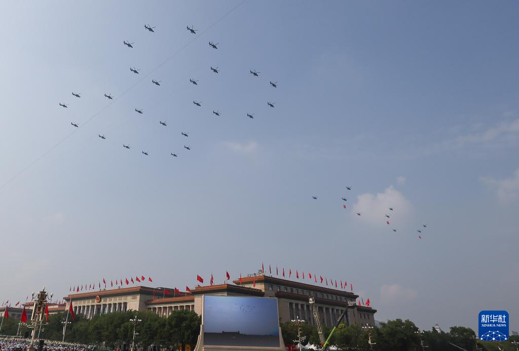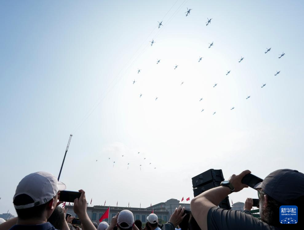 9月3日,紀念中國人民抗日戰爭暨世界反法西斯戰爭勝利80周年大會在北京隆重舉行。這是空中護旗梯隊接受檢閱。