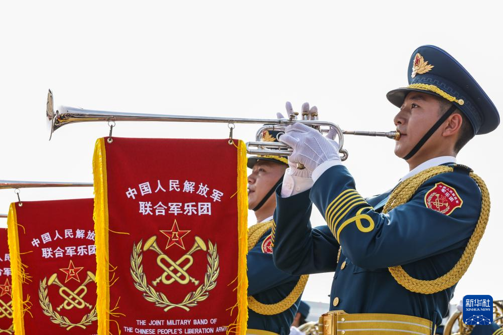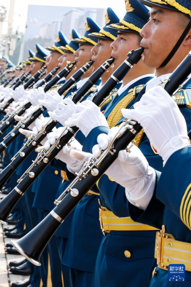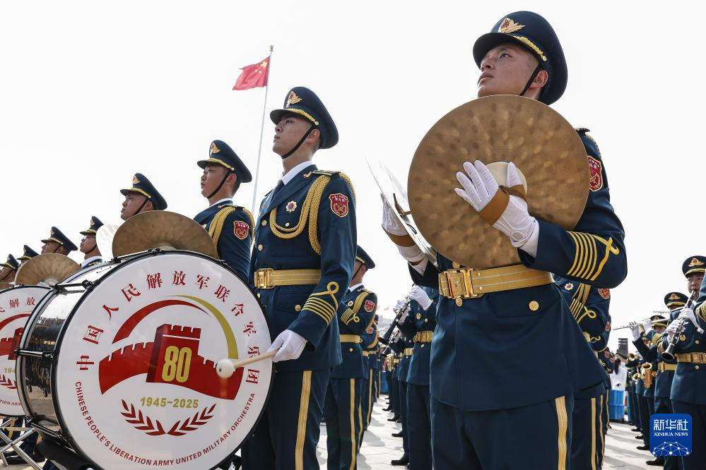 9月3日,紀念中國人民抗日戰爭暨世界反法西斯戰爭勝利80周年大會在北京隆重舉行。這是中國人民解放軍聯合軍樂團在演奏。