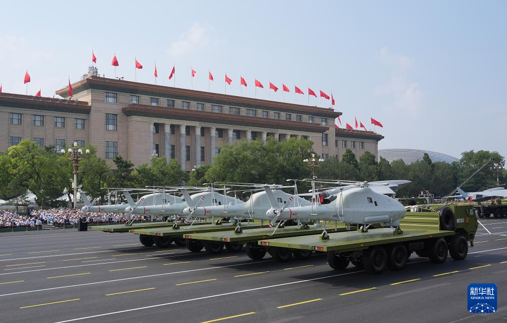 9月3日,紀念中國人民抗日戰爭暨世界反法西斯戰爭勝利80周年大會在北京隆重舉行。這是空中無人作戰方隊接受檢閱。