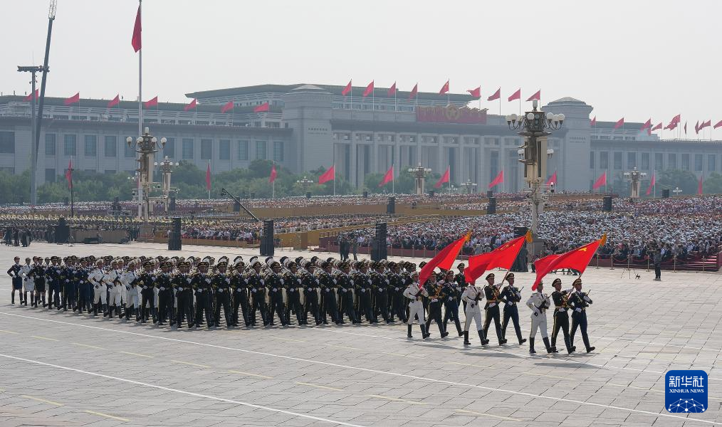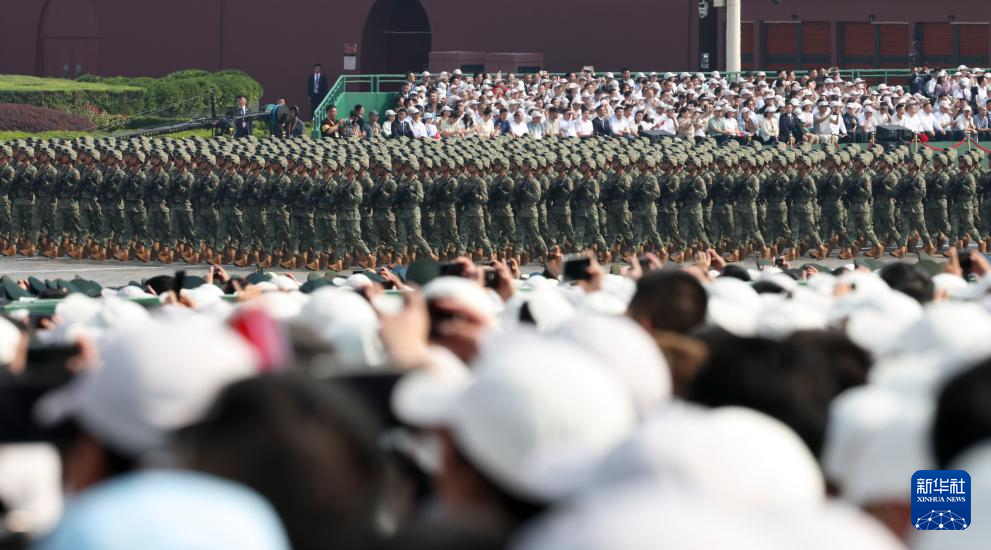 9月3日,紀念中國人民抗日戰爭暨世界反法西斯戰爭勝利80周年大會在北京隆重舉行。這是中國人民解放軍儀仗方隊接受檢閱。