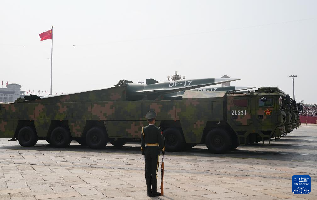 9月3日,紀念中國人民抗日戰爭暨世界反法西斯戰爭勝利80周年大會在北京隆重舉行。這是高超聲速導彈方隊接受檢閱。