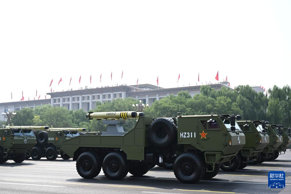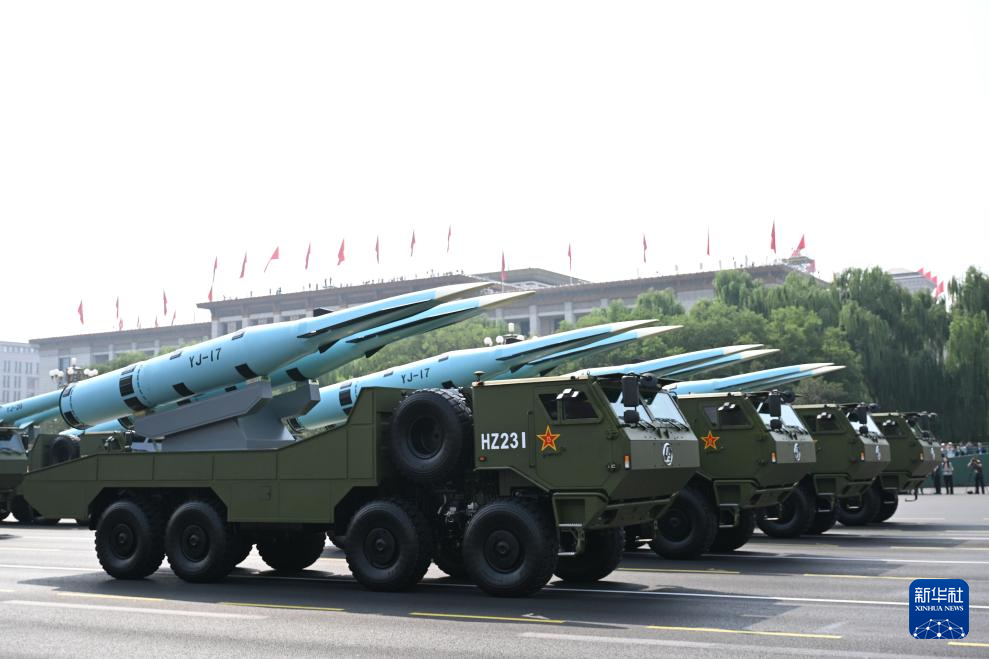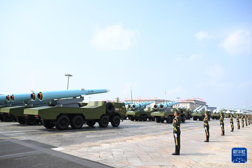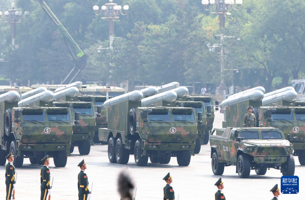 9月3日,紀念中國人民抗日戰爭暨世界反法西斯戰爭勝利80周年大會在北京隆重舉行。這是反艦導彈方隊接受檢閱。