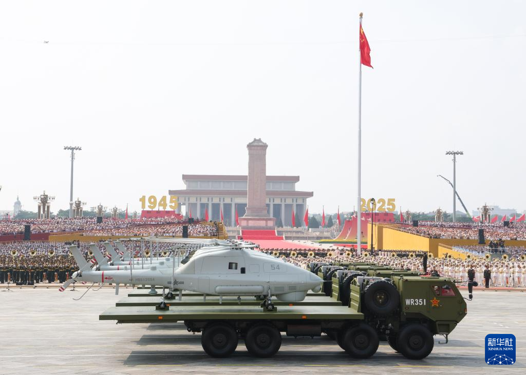 9月3日,紀念中國人民抗日戰爭暨世界反法西斯戰爭勝利80周年大會在北京隆重舉行。這是空中無人作戰方隊接受檢閱。