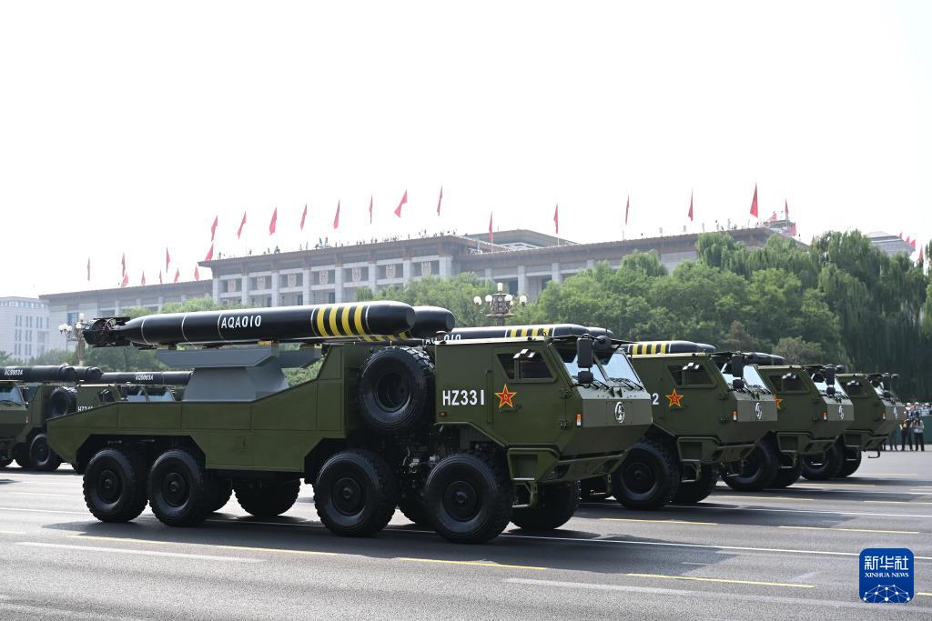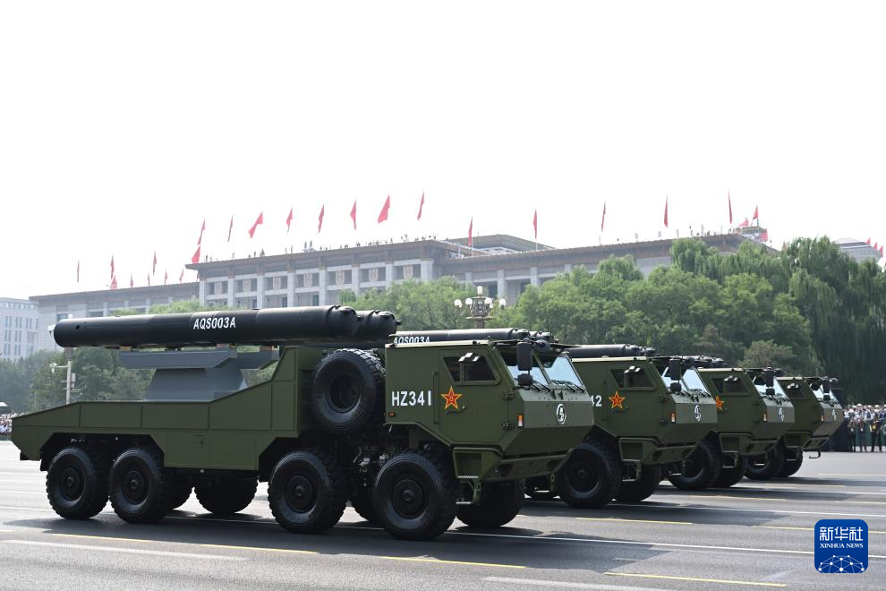 9月3日,紀念中國人民抗日戰爭暨世界反法西斯戰爭勝利80周年大會在北京隆重舉行。這是水下兵器方隊接受檢閱。