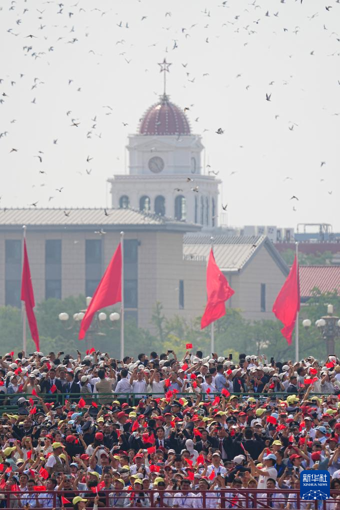 9月3日,紀念中國人民抗日戰爭暨世界反法西斯戰爭勝利80周年大會在北京隆重舉行。這是紀念大會現場放飛和平鴿。