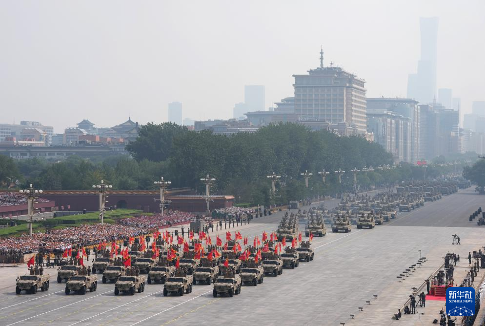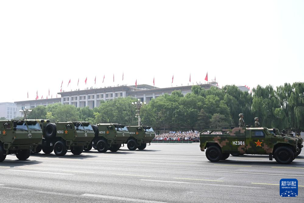 9月3日,紀念中國人民抗日戰爭暨世界反法西斯戰爭勝利80周年大會在北京隆重舉行。這是信息支援方隊通過天安門廣場。