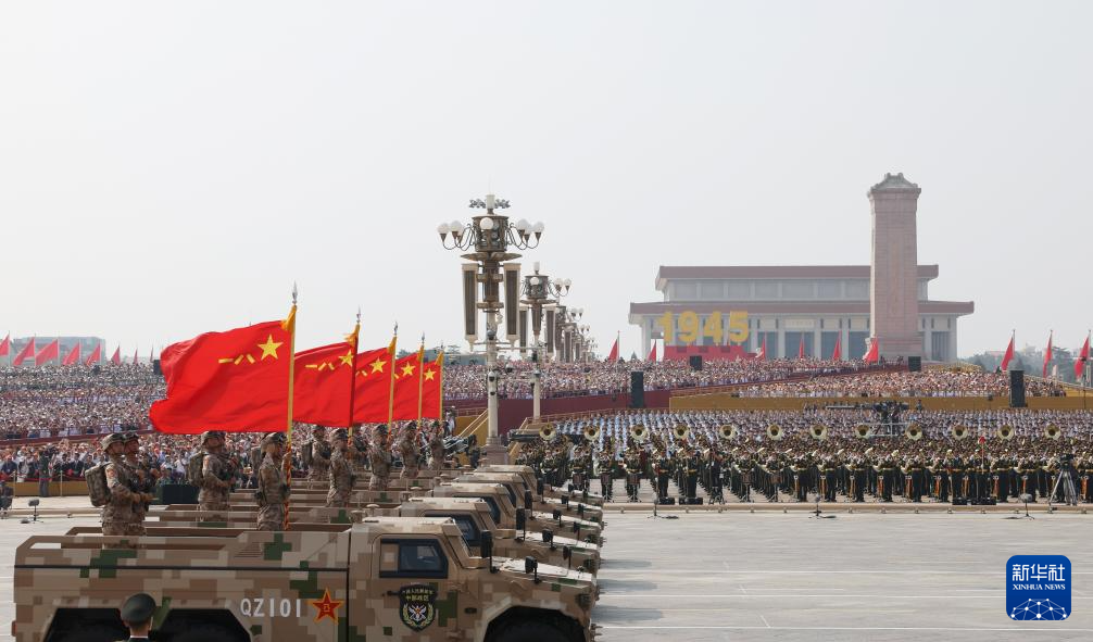 9月3日,紀念中國人民抗日戰爭暨世界反法西斯戰爭勝利80周年大會在北京隆重舉行。這是戰旗方隊接受檢閱。