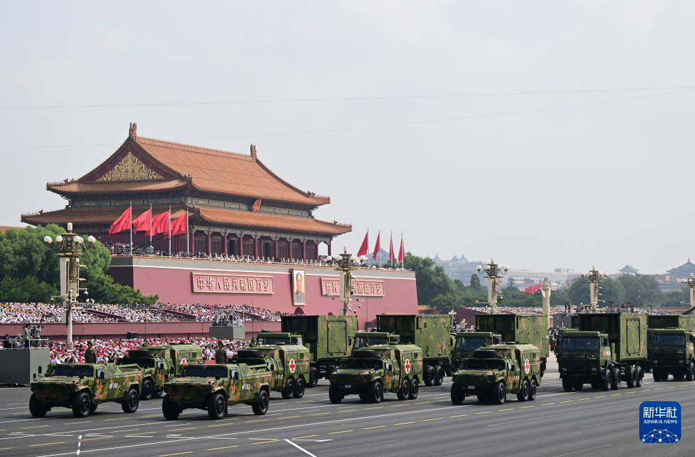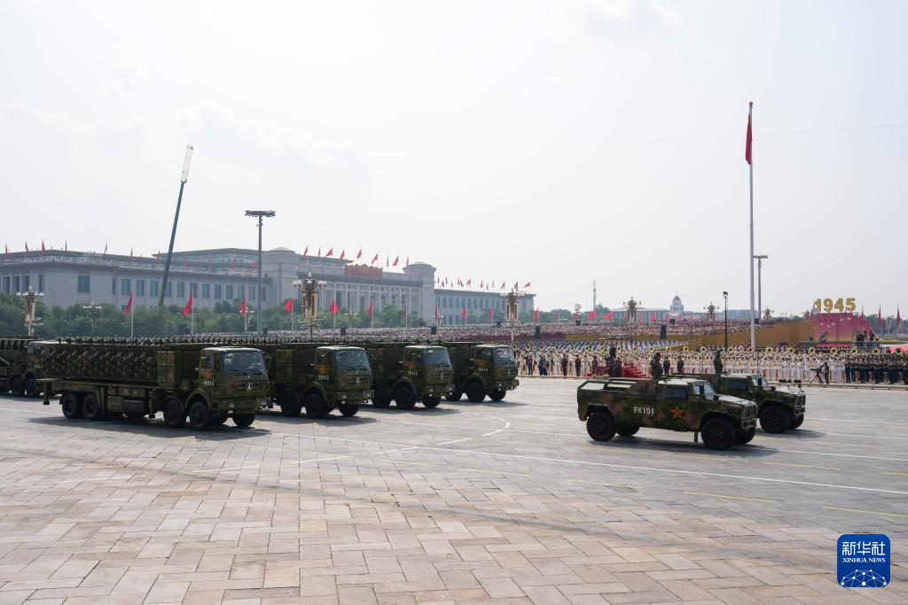 9月3日,紀念中國人民抗日戰爭暨世界反法西斯戰爭勝利80周年大會在北京隆重舉行。這是裝備保障方隊接受檢閱。