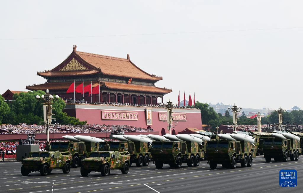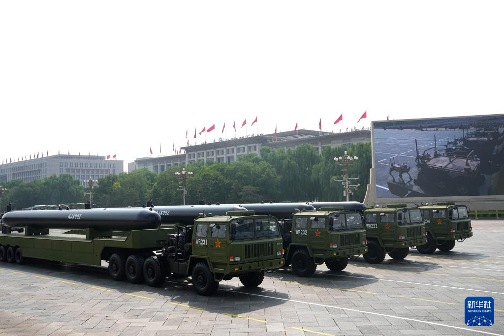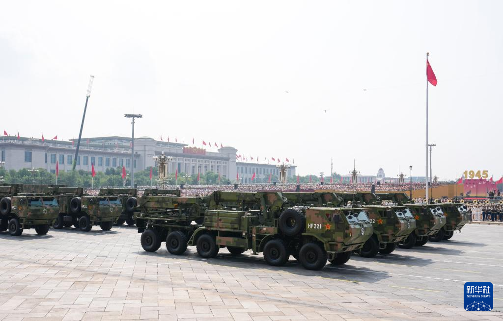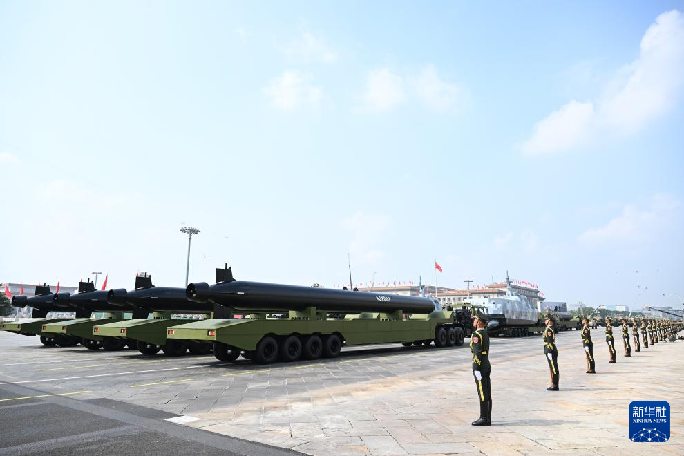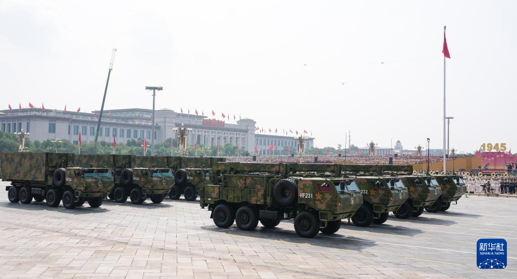 9月3日,紀念中國人民抗日戰爭暨世界反法西斯戰爭勝利80周年大會在北京隆重舉行。這是高超聲速導彈方隊接受檢閱。