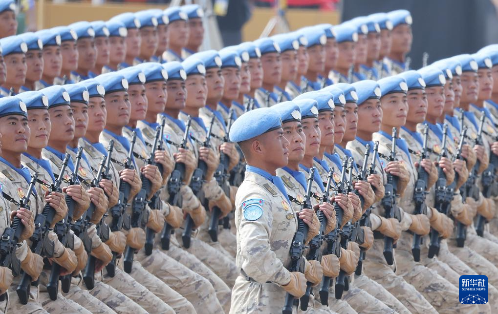 9月3日,紀念中國人民抗日戰爭暨世界反法西斯戰爭勝利80周年大會在北京隆重舉行。這是維和部隊方隊接受檢閱。