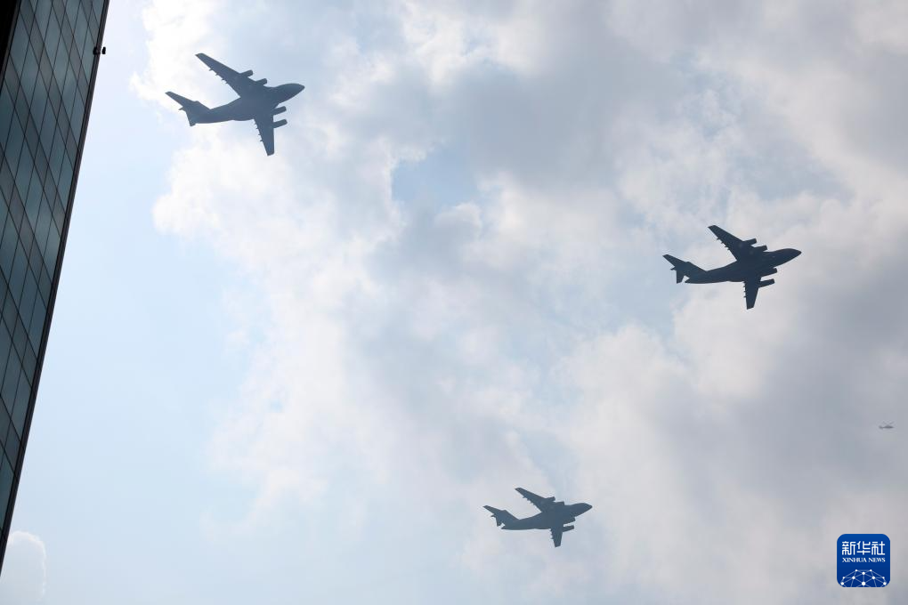 9月3日,紀念中國人民抗日戰爭暨世界反法西斯戰爭勝利80周年大會在北京隆重舉行。這是運輸機梯隊接受檢閱。
