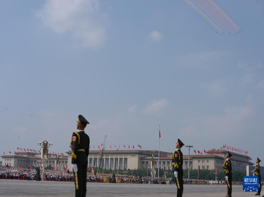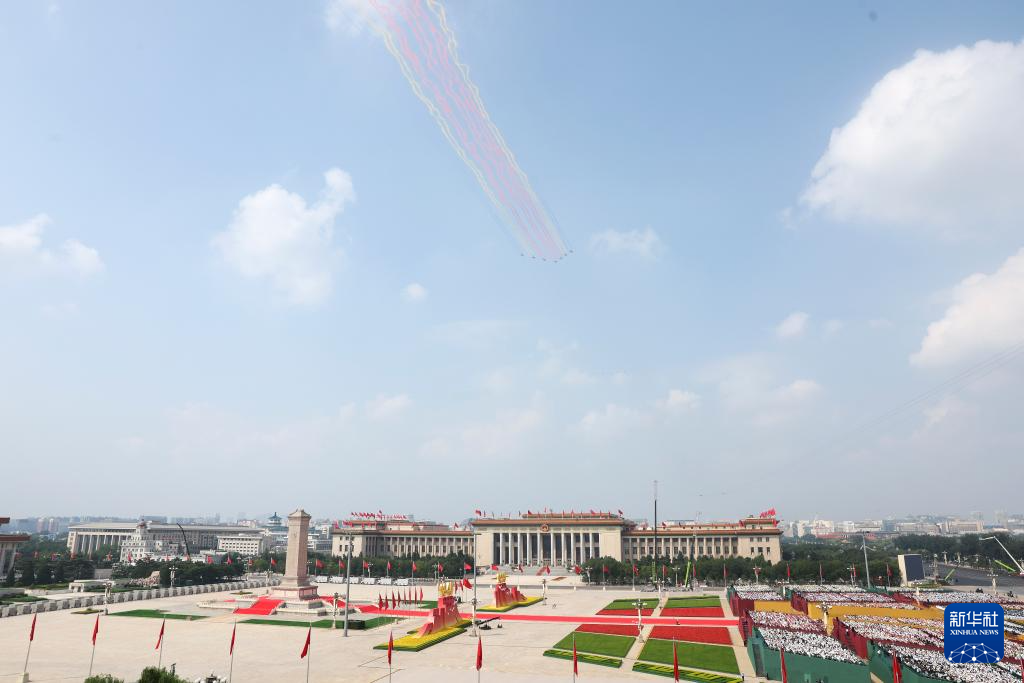 9月3日,紀念中國人民抗日戰爭暨世界反法西斯戰爭勝利80周年大會在北京隆重舉行。這是空中護旗梯隊接受檢閱。