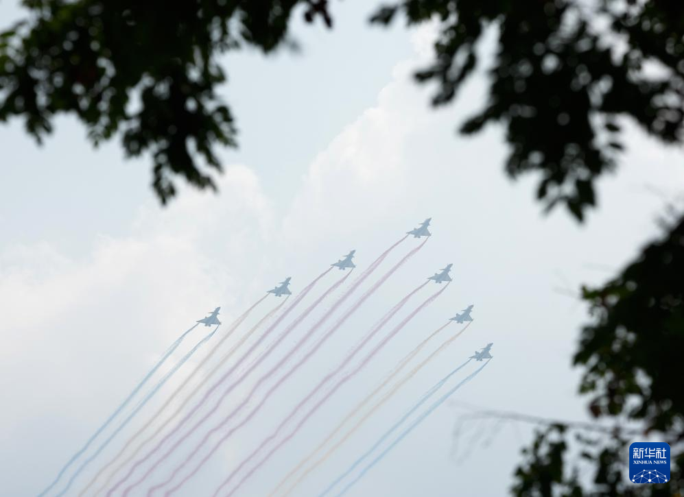 9月3日,紀念中國人民抗日戰爭暨世界反法西斯戰爭勝利80周年大會在北京隆重舉行。這是教練機梯隊飛過天安門廣場上空。