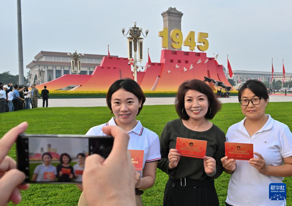 9月3日,紀念中國人民抗日戰爭暨世界反法西斯戰爭勝利80周年大會將在北京隆重舉行。這是觀禮嘉賓在合影。