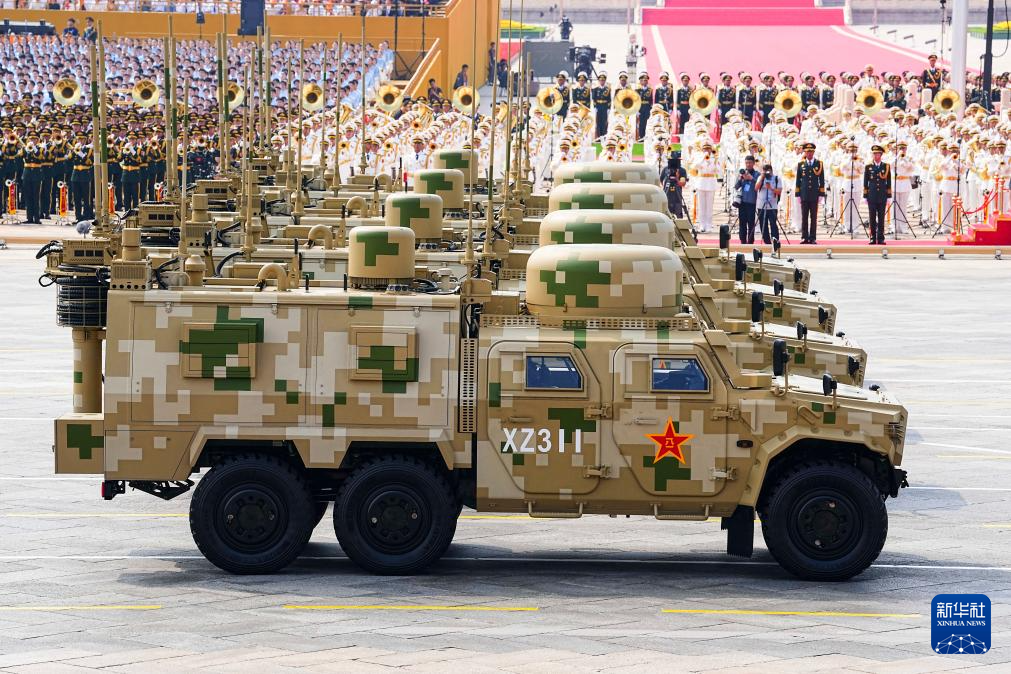 9月3日,紀念中國人民抗日戰爭暨世界反法西斯戰爭勝利80周年大會在北京隆重舉行。這是信息支援方隊接受檢閱。