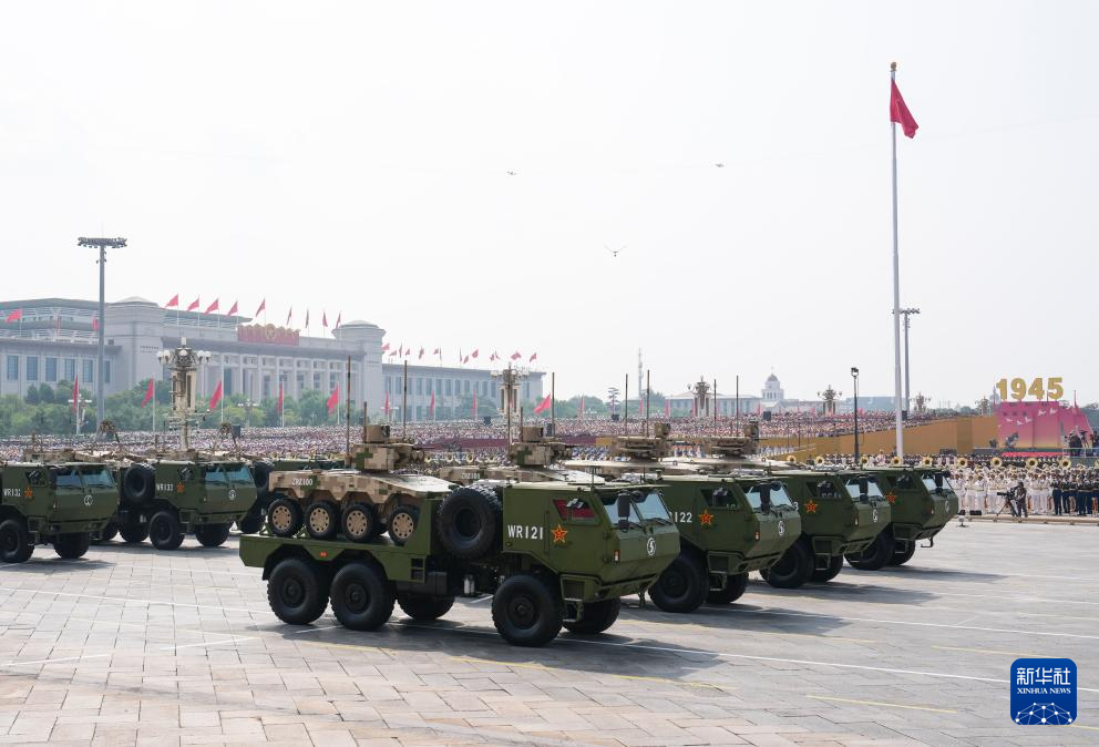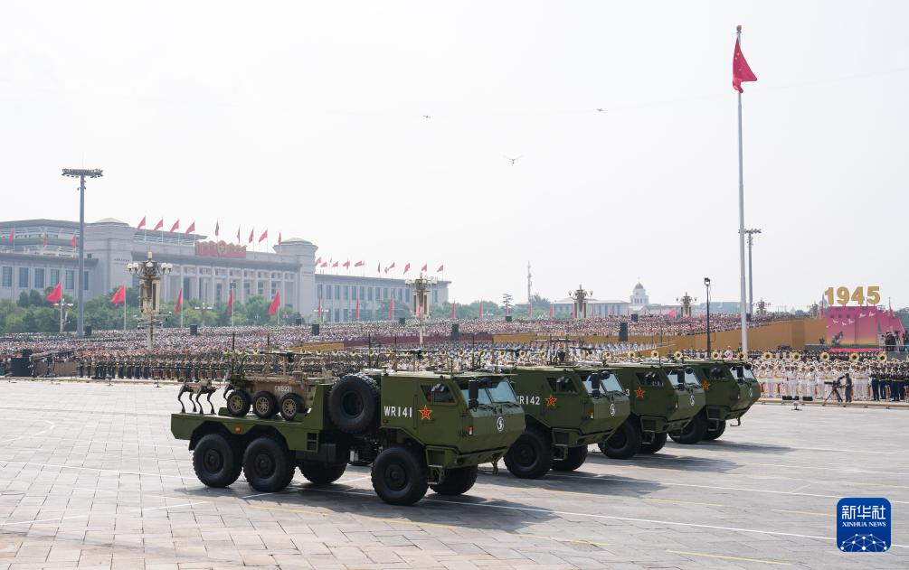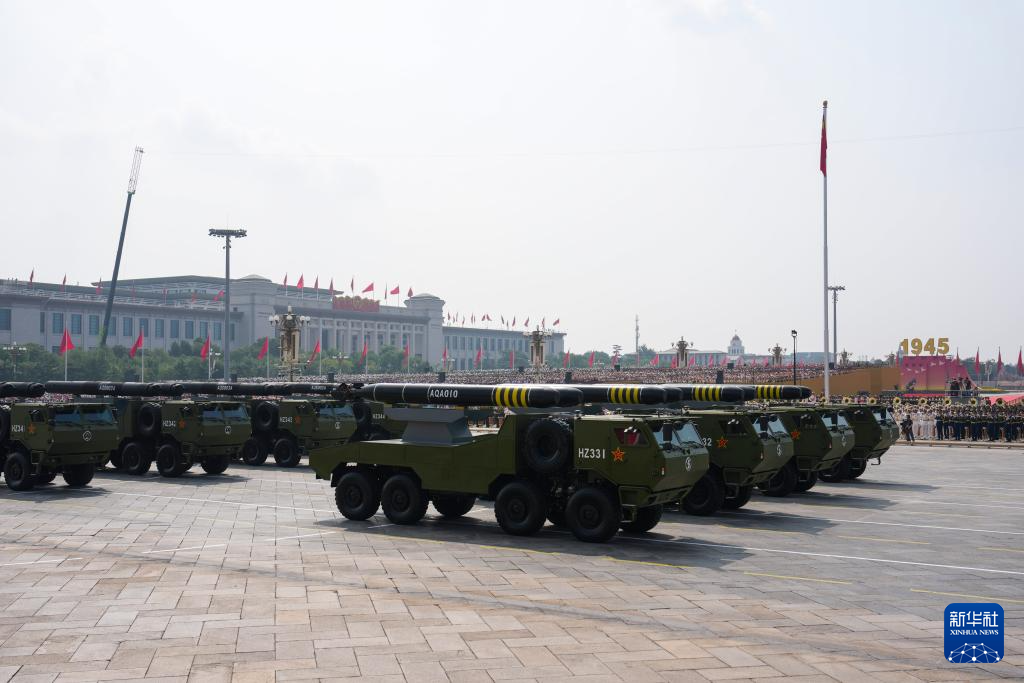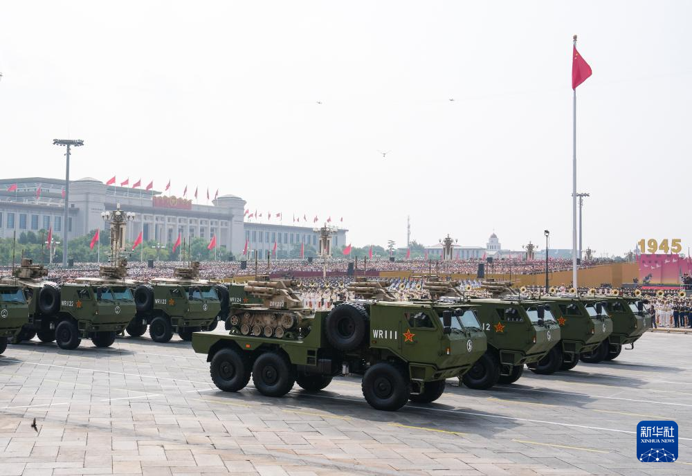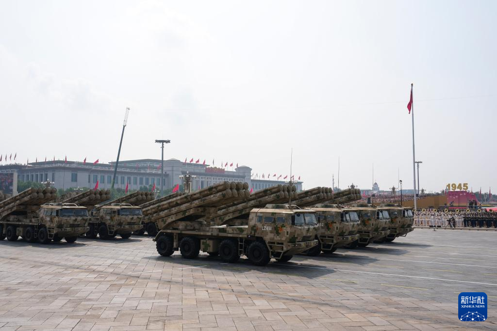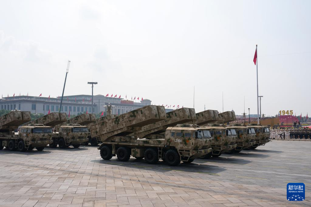 9月3日,紀念中國人民抗日戰爭暨世界反法西斯戰爭勝利80周年大會在北京隆重舉行。這是遠程火炮方隊接受檢閱。