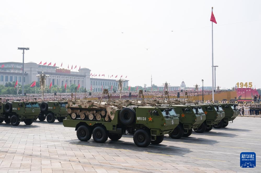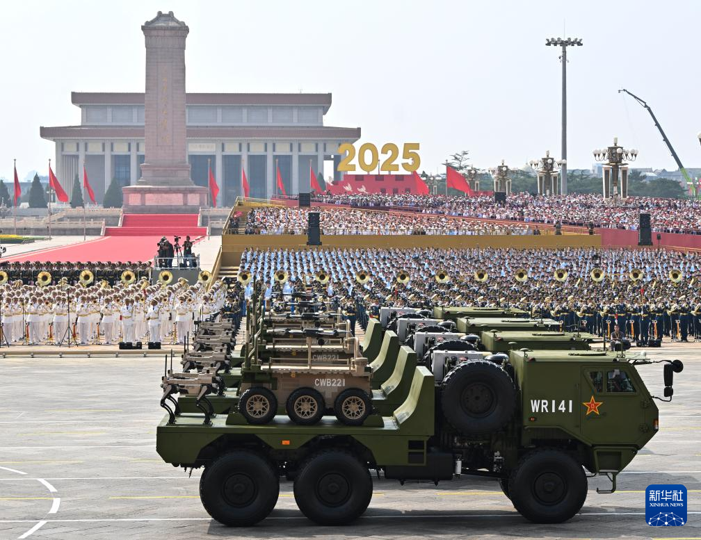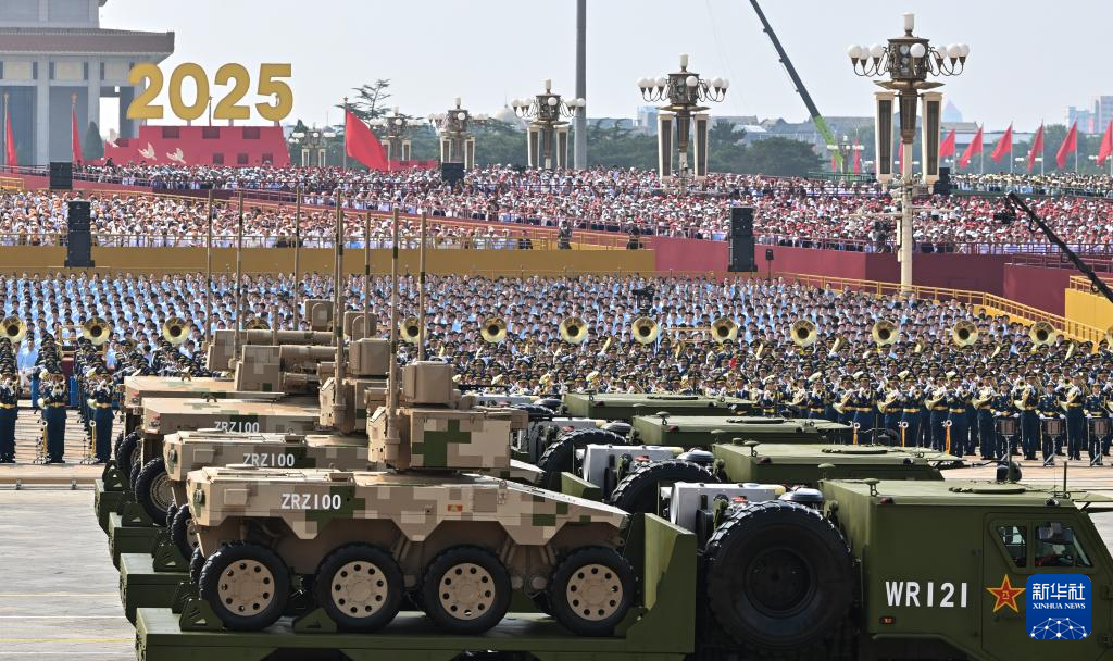 9月3日,紀念中國人民抗日戰爭暨世界反法西斯戰爭勝利80周年大會在北京隆重舉行。這是陸上無人作戰方隊接受檢閱。