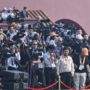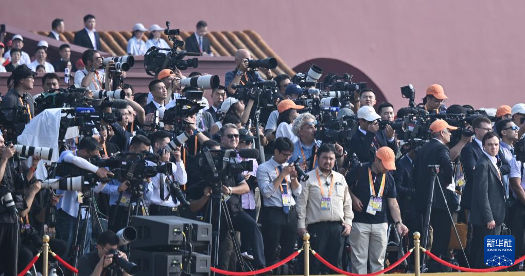9月3日,紀念中國人民抗日戰爭暨世界反法西斯戰爭勝利80周年大會在北京隆重舉行。這是報道大會的媒體記者。