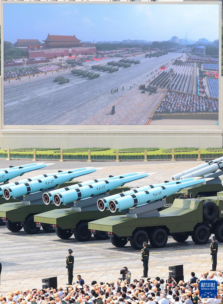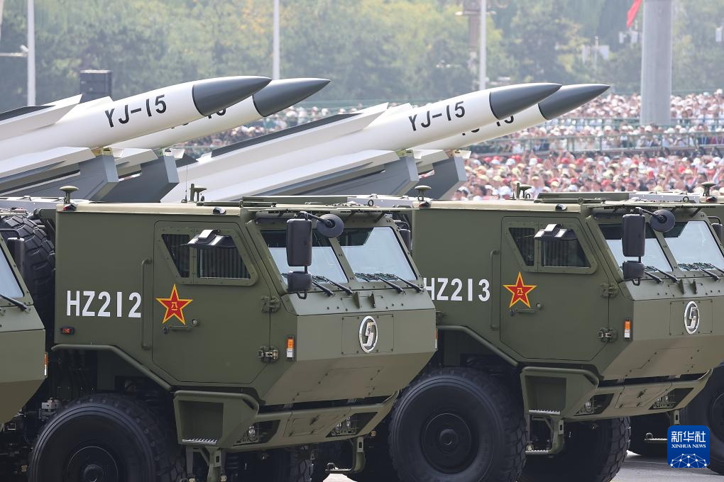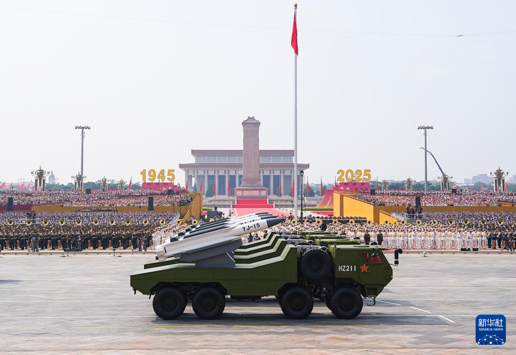 9月3日,紀念中國人民抗日戰爭暨世界反法西斯戰爭勝利80周年大會在北京隆重舉行。這是反艦導彈方隊接受檢閱。