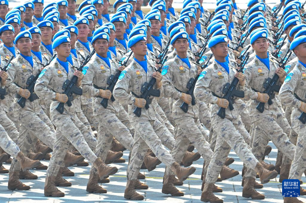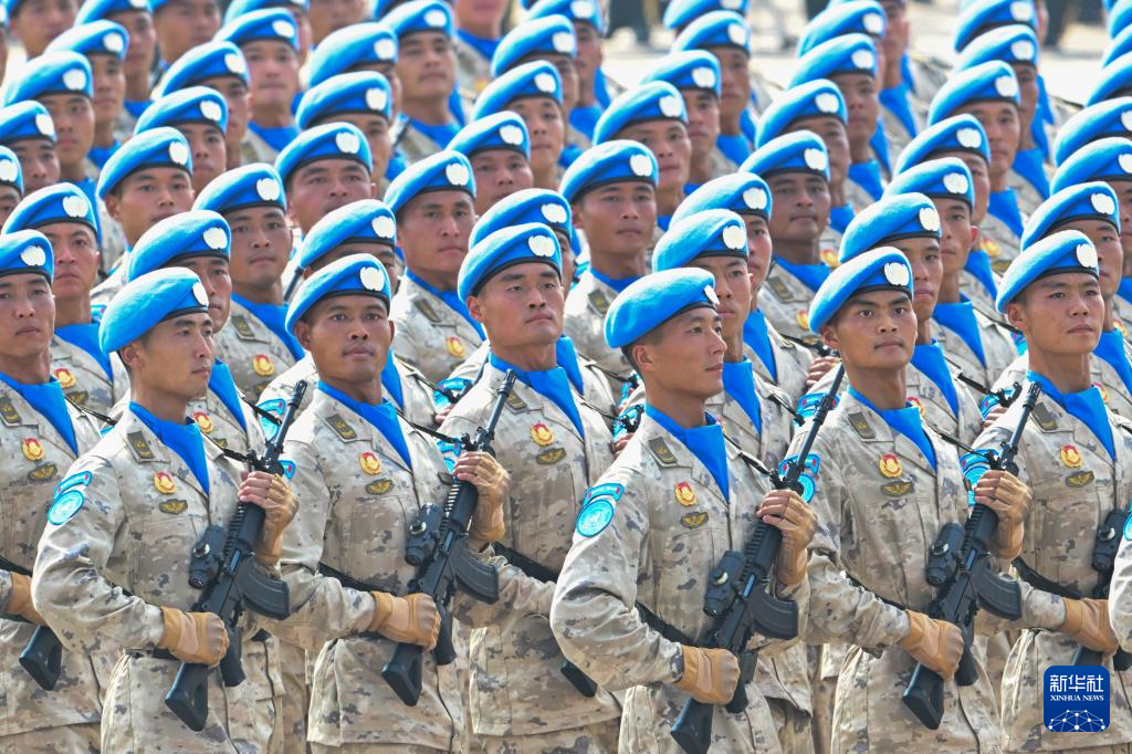 9月3日,紀念中國人民抗日戰爭暨世界反法西斯戰爭勝利80周年大會在北京隆重舉行。這是維和部隊方隊接受檢閱。