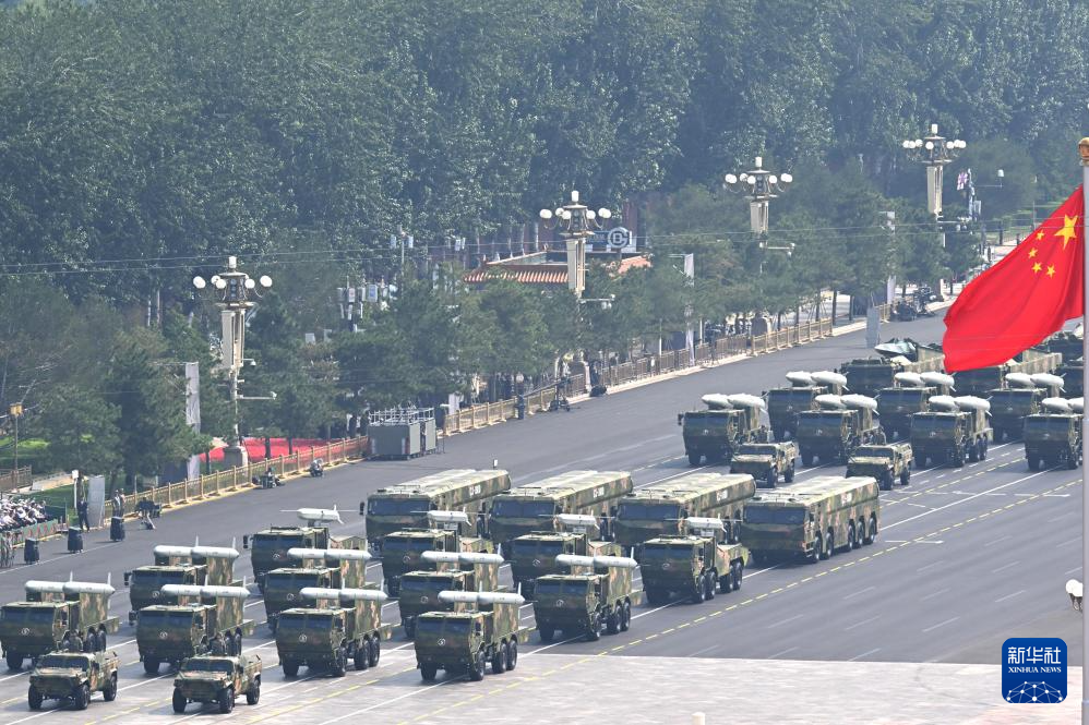 9月3日,紀念中國人民抗日戰爭暨世界反法西斯戰爭勝利80周年大會在北京隆重舉行。這是火箭軍方隊接受檢閱。