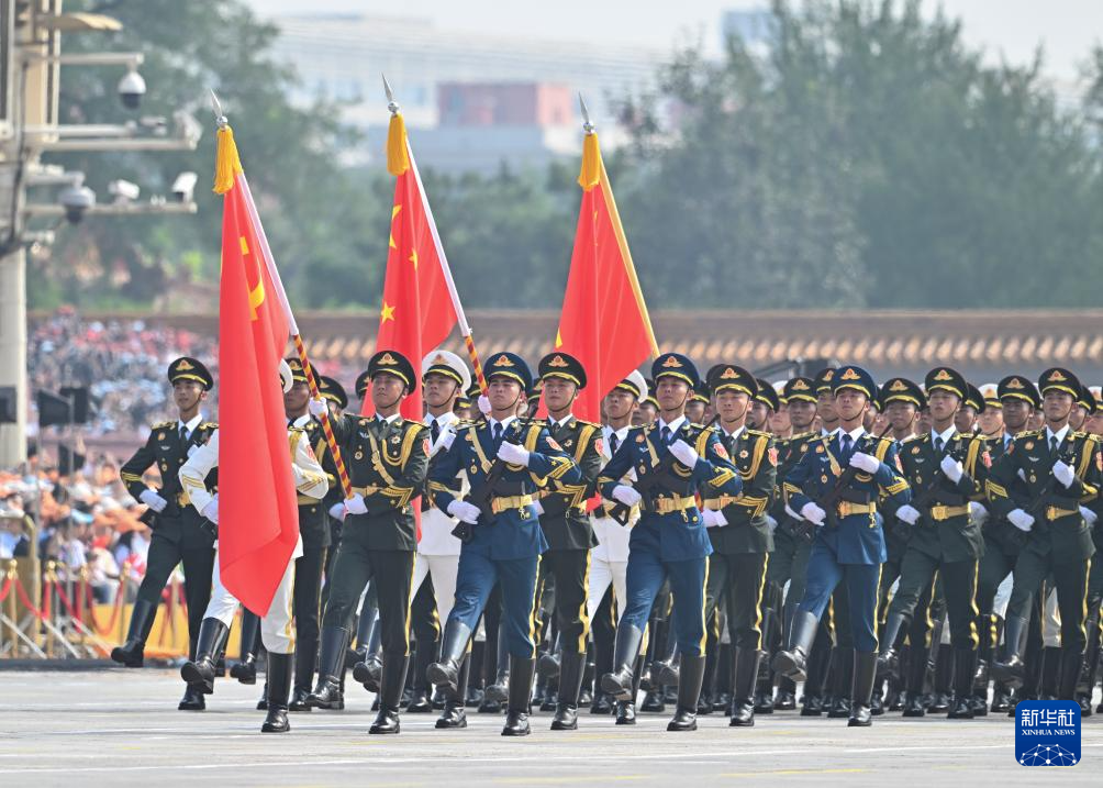 9月3日,紀念中國人民抗日戰爭暨世界反法西斯戰爭勝利80周年大會在北京隆重舉行。這是中國人民解放軍儀仗方隊接受檢閱。