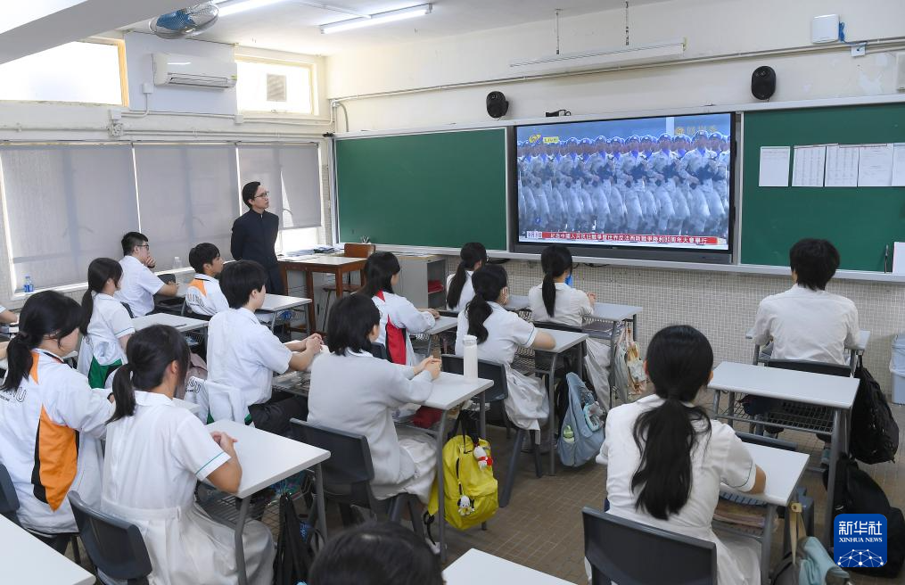 9月3日,香港培僑中學師生觀看紀念中國人民抗日戰爭暨世界反法西斯戰爭勝利80周年大會直播。