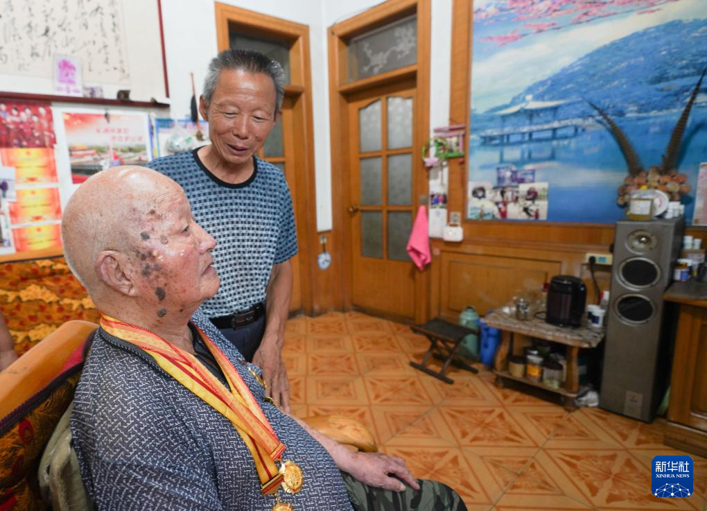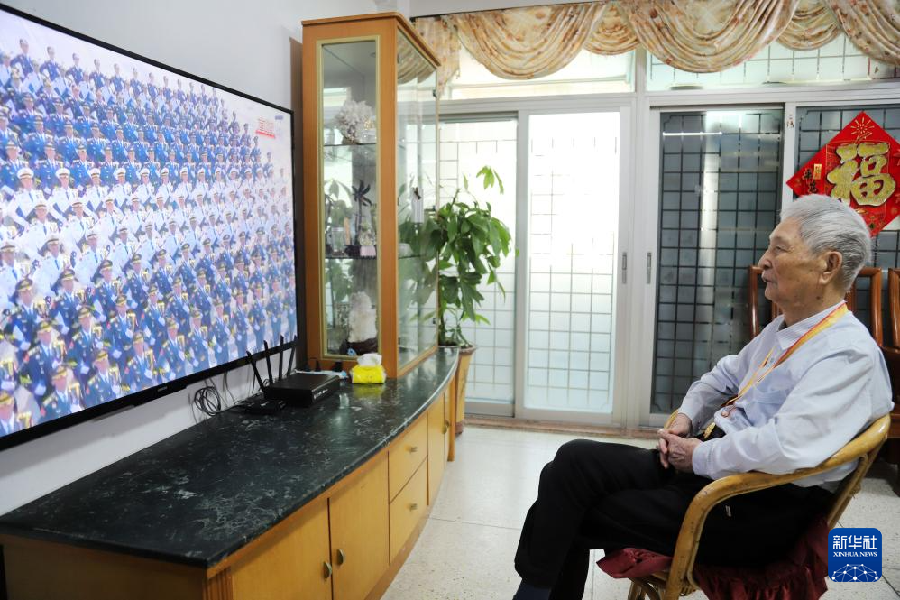 9月3日,廣東汕頭102歲的抗戰老兵陳天在家中觀看紀念中國人民抗日戰爭暨世界反法西斯戰爭勝利80周年大會直播。