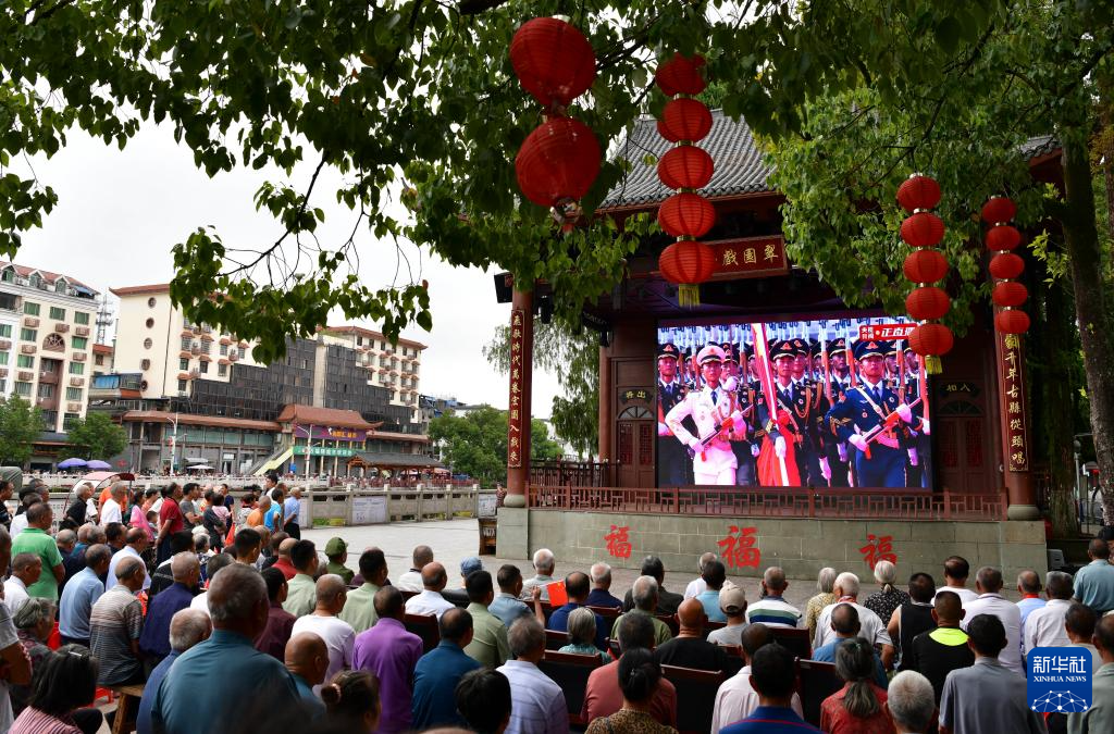 9月3日,在福建省三明市寧化縣,退伍軍人和群眾一起觀看紀念中國人民抗日戰爭暨世界反法西斯戰爭勝利80周年大會直播。