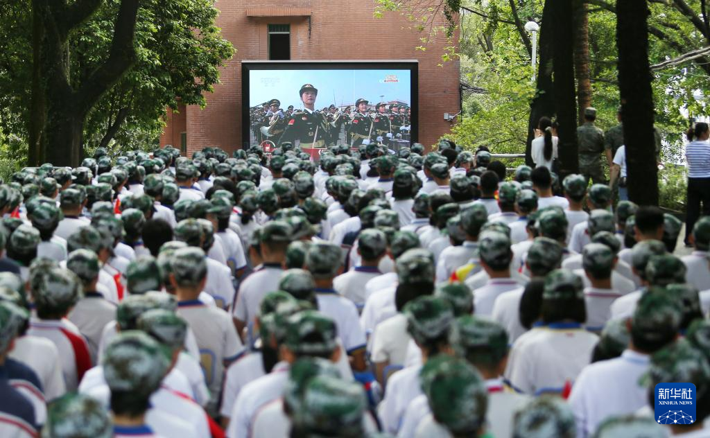 9月3日,廣東省鶴山市第一中學的師生在觀看紀念中國人民抗日戰爭暨世界反法西斯戰爭勝利80周年大會直播。