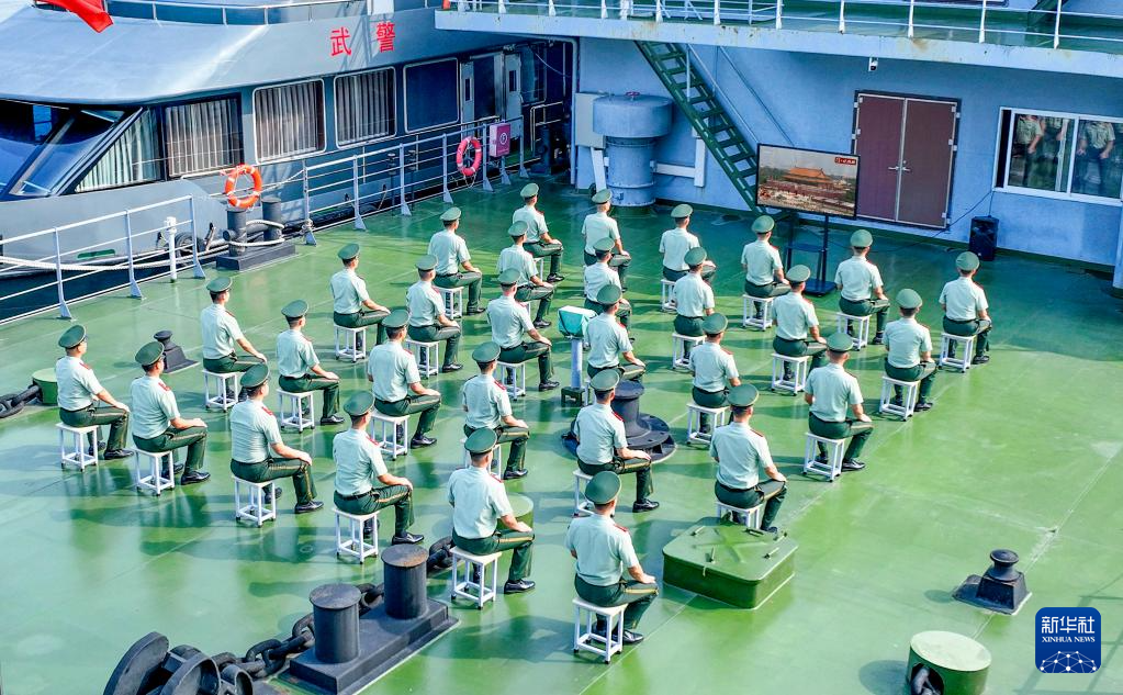 9月3日,武警江蘇總隊南京支隊船艇大隊官兵觀看紀念中國人民抗日戰爭暨世界反法西斯戰爭勝利80周年大會直播。