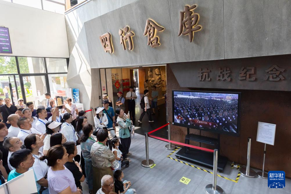 9月3日,參觀者在陜西延安革命紀念館觀看紀念中國人民抗日戰爭暨世界反法西斯戰爭勝利80周年大會直播。