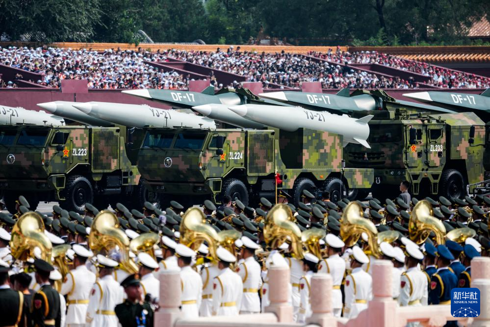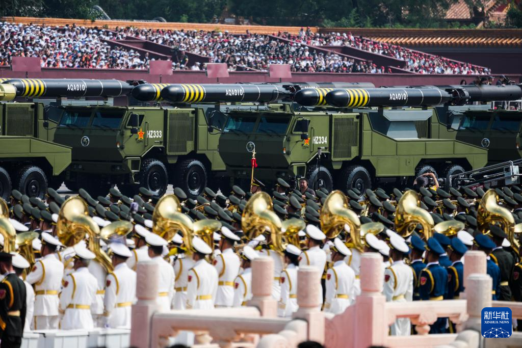 9月3日,紀念中國人民抗日戰爭暨世界反法西斯戰爭勝利80周年大會在北京隆重舉行。這是高超聲速導彈方隊接受檢閱。