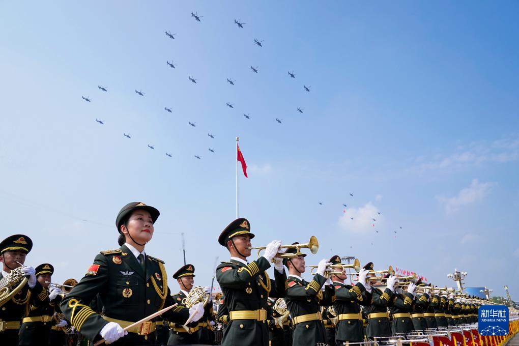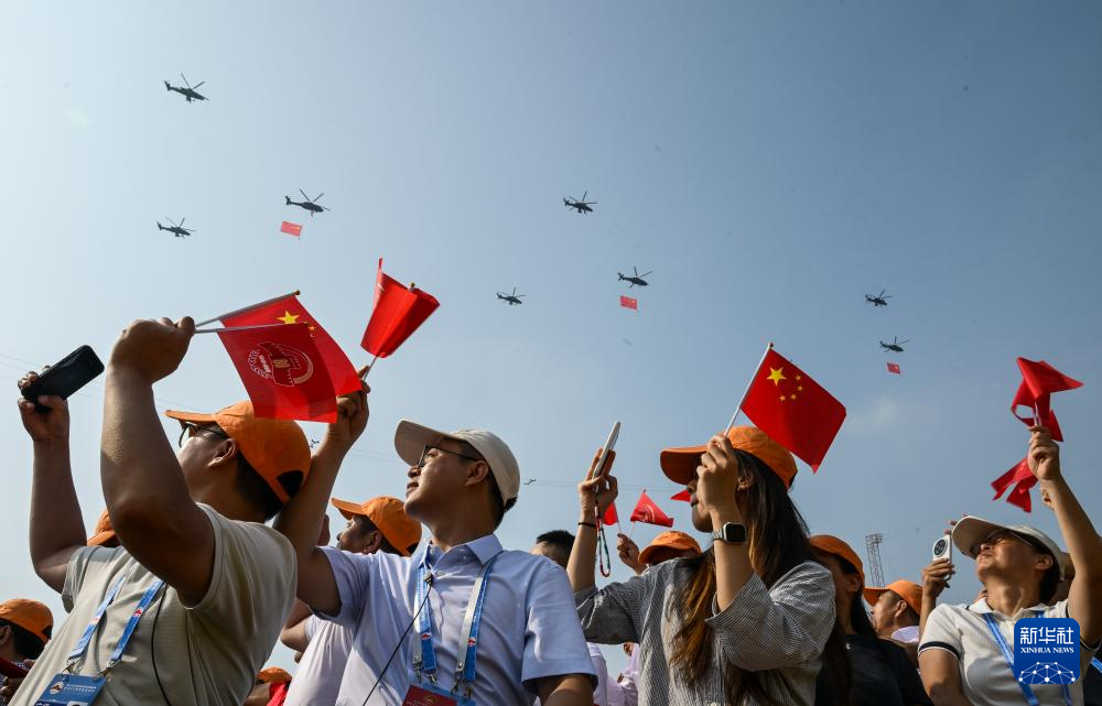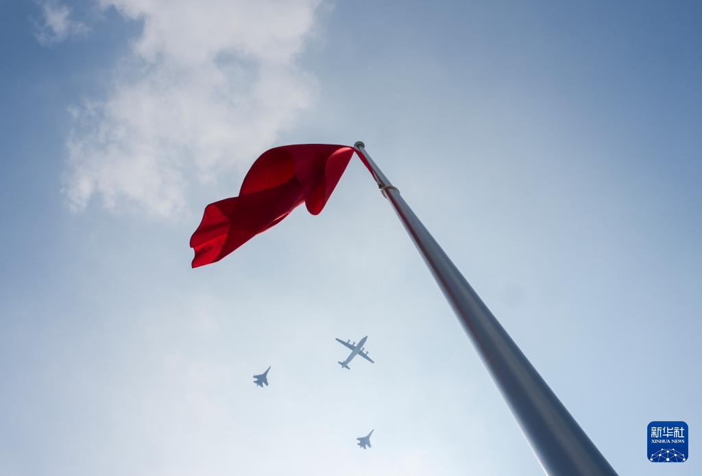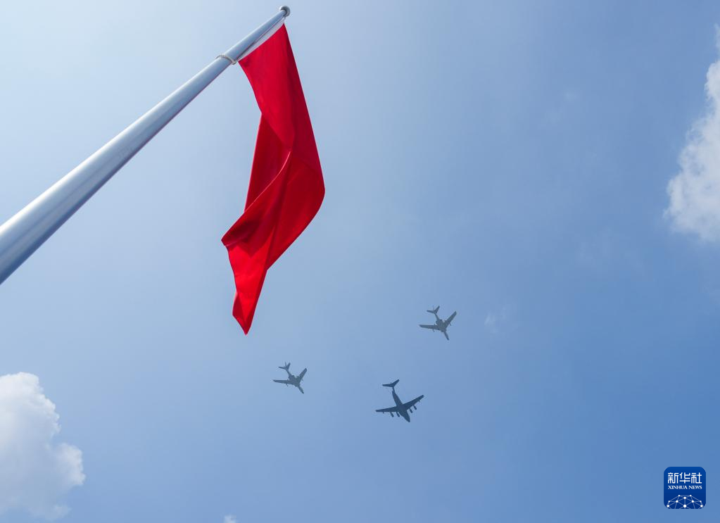 9月3日,紀念中國人民抗日戰爭暨世界反法西斯戰爭勝利80周年大會在北京隆重舉行。這是空中護旗梯隊接受檢閱。