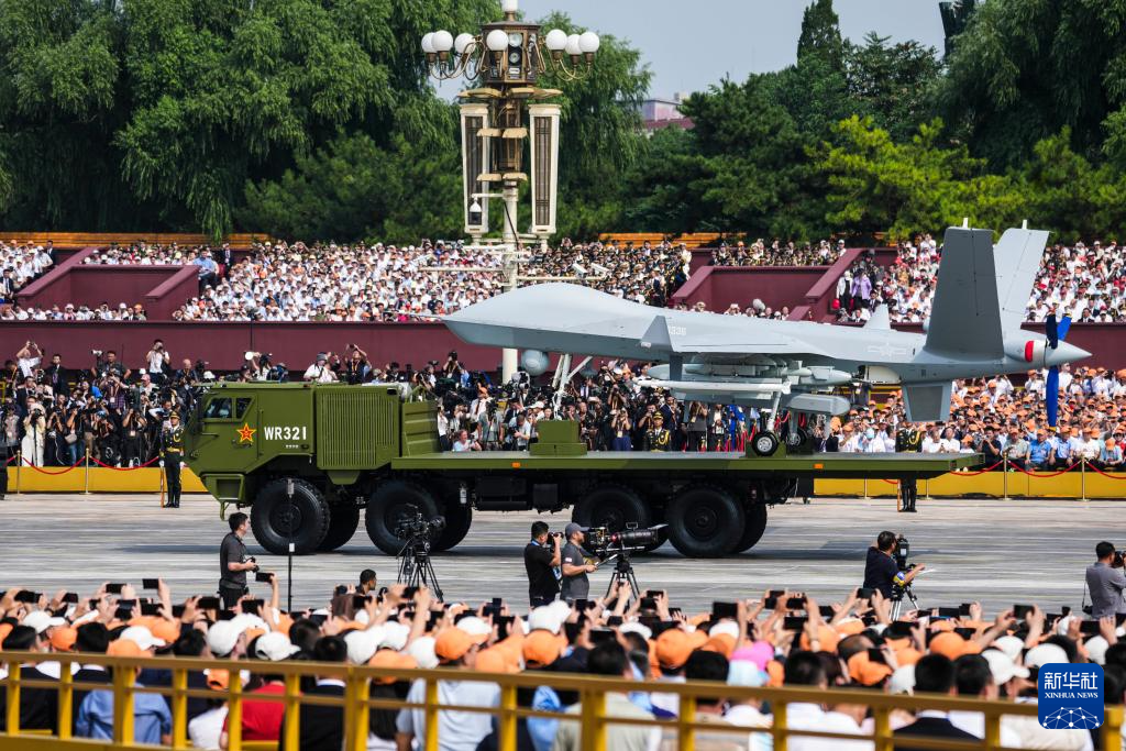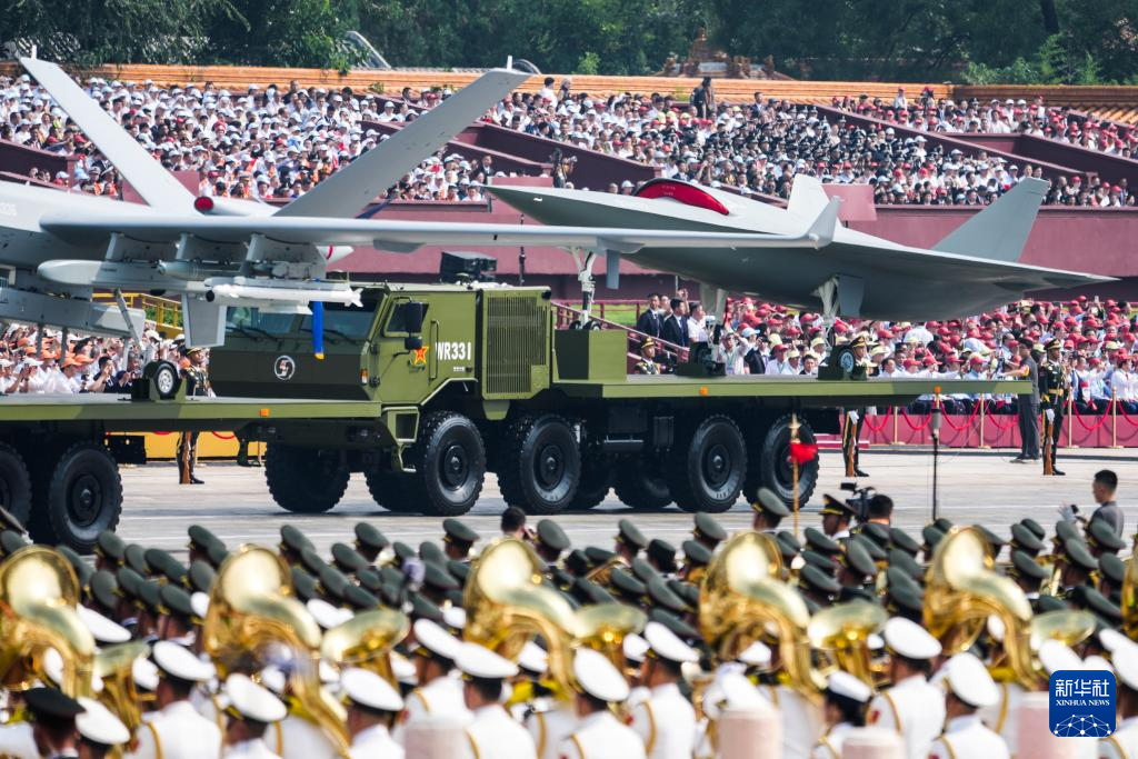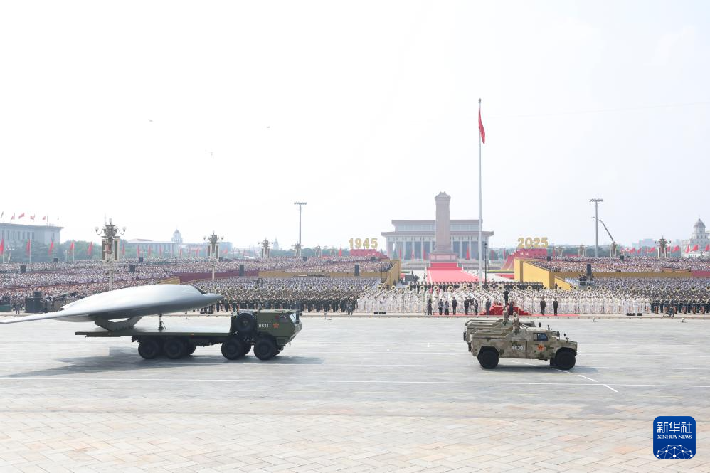 9月3日,紀念中國人民抗日戰爭暨世界反法西斯戰爭勝利80周年大會在北京隆重舉行。這是空中無人作戰方隊接受檢閱。