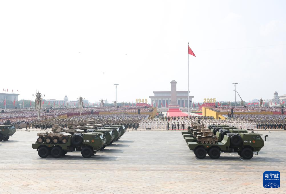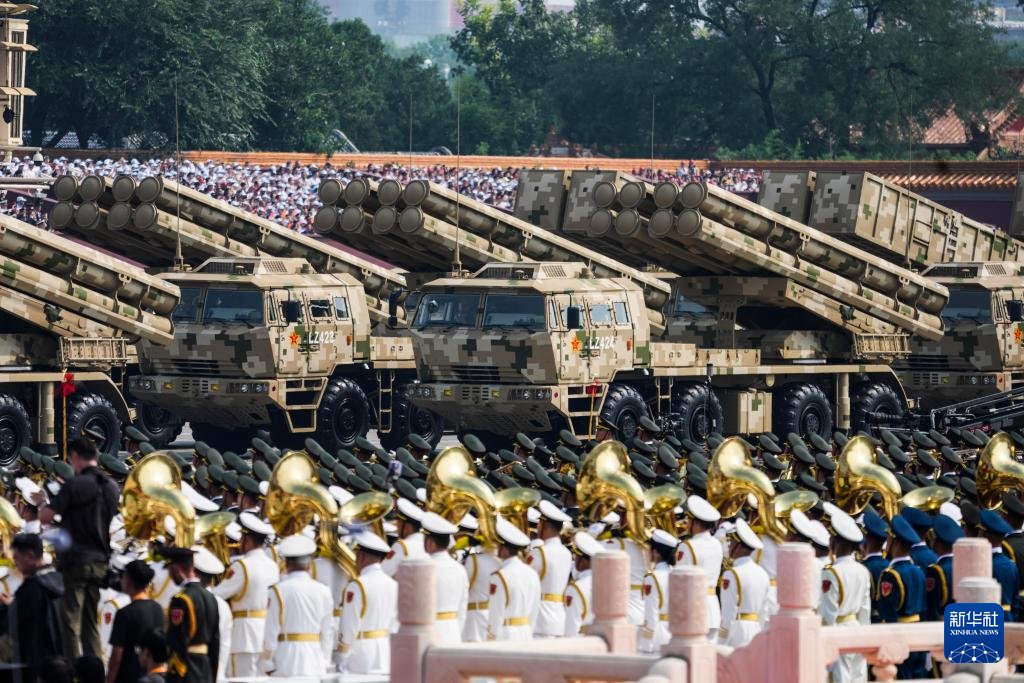 9月3日,紀念中國人民抗日戰爭暨世界反法西斯戰爭勝利80周年大會在北京隆重舉行。這是遠程火炮方隊接受檢閱。