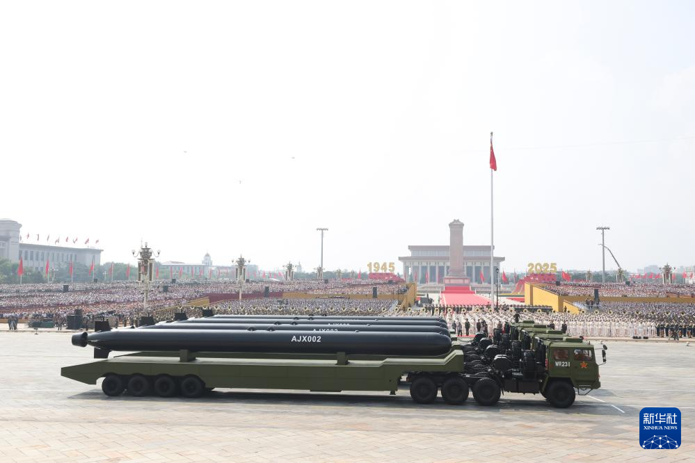 9月3日,紀念中國人民抗日戰爭暨世界反法西斯戰爭勝利80周年大會在北京隆重舉行。這是水下兵器方隊接受檢閱。